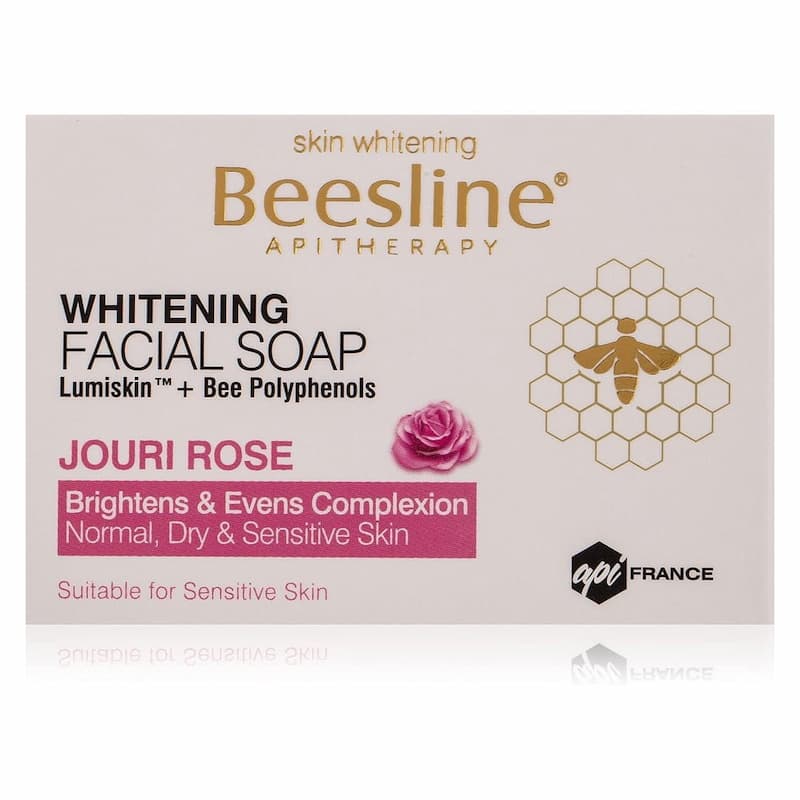 Beesline Whitening Jouri Rose Facial Soap is a moisturising soap that is rich in honey and radiance boosting extracts. Deeply cleanses and refreshes the skin while brightening the complexion and evening out skin tone. Honey, beeswax, royal jelly, propolis, combined with fresh botanical extracts, to safely and effectively take care of your skin.