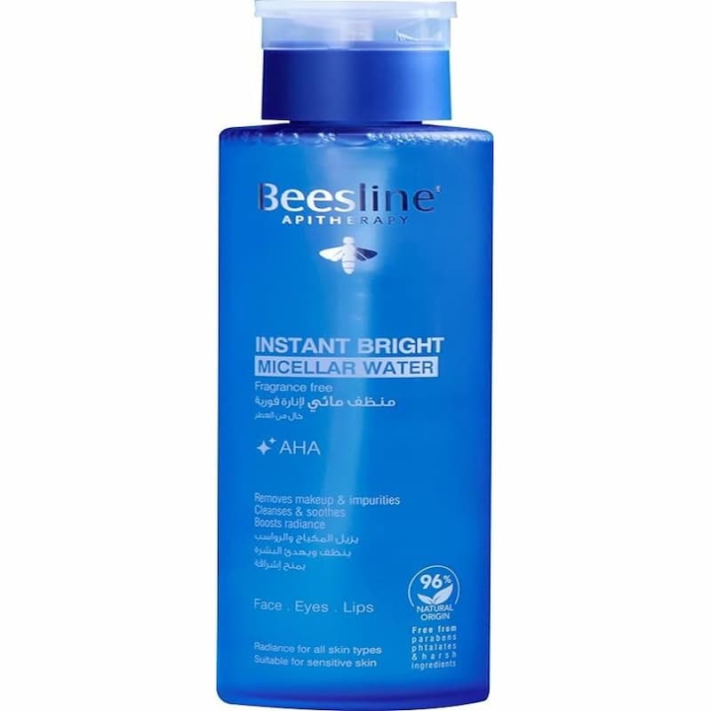 Beesline Micellar Water Cleanser, Skin Soothing and Make-up Remover 400ml A shimmering micellar water for a more even skin tone. It prevents pore buildup by deeply cleansing your skin and removing makeup. With soothing properties.