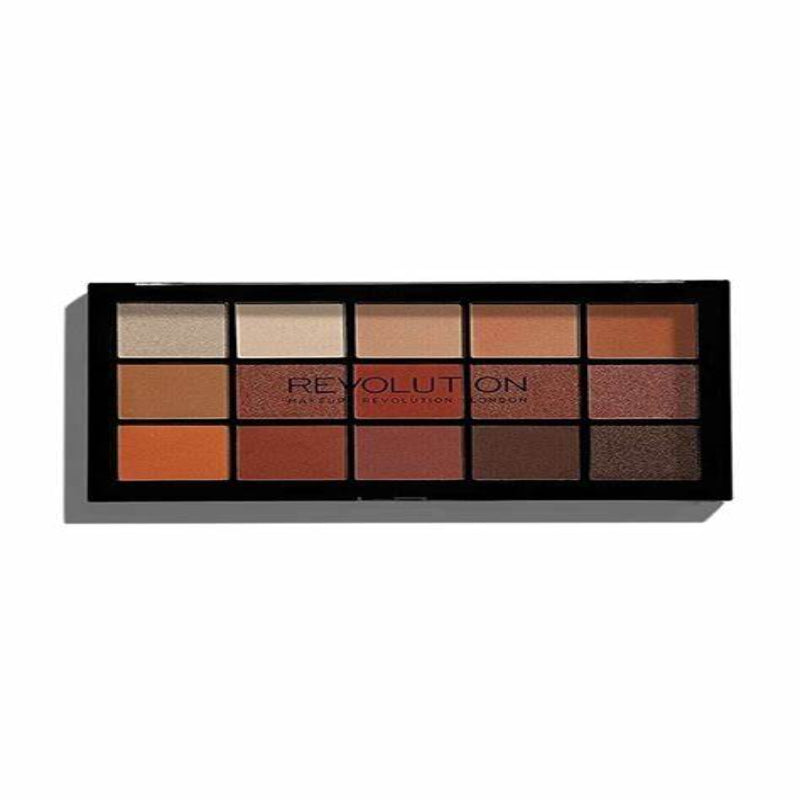 Versatile Colors: Revolution eyeshadow offers eye makeup in a variety of matte and shimmer shades of orange and burgundy in this diverse eyeshadow palette.