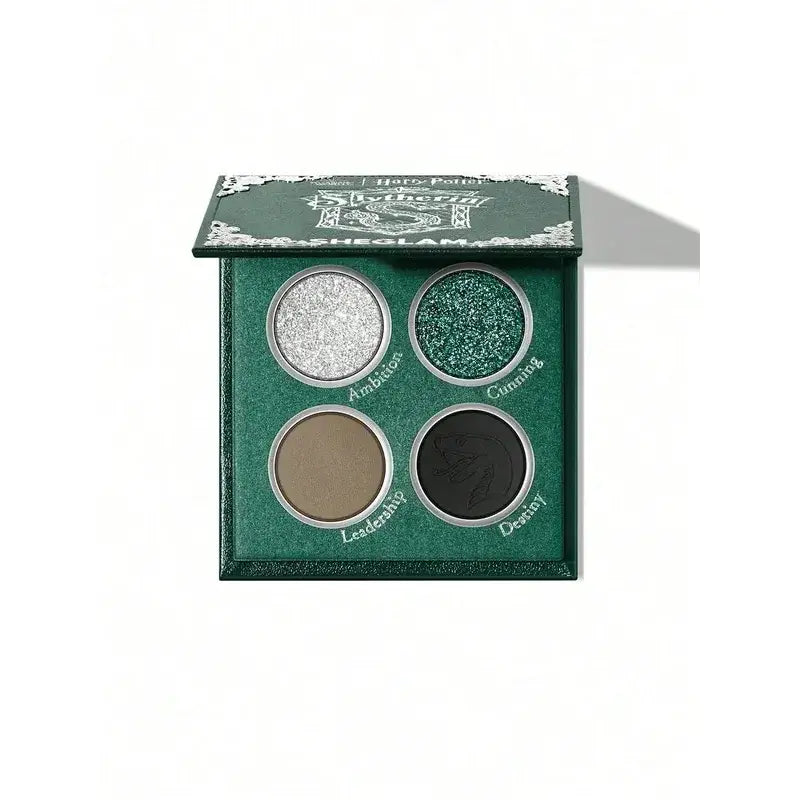 The SHEGLAM Harry Potter™ X Slytherin™ House Palette is a collaboration between SHEGLAM and the Harry Potter™ series, designed to capture the essence of Slytherin™ House. This palette features a selection of four eyeshadows, combining both matte and shimmer finishes, all in shades of green and silver that reflect the house's iconic colors.